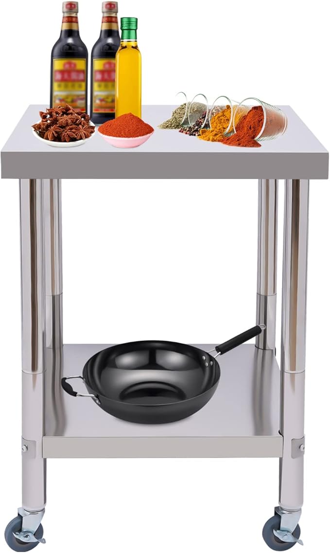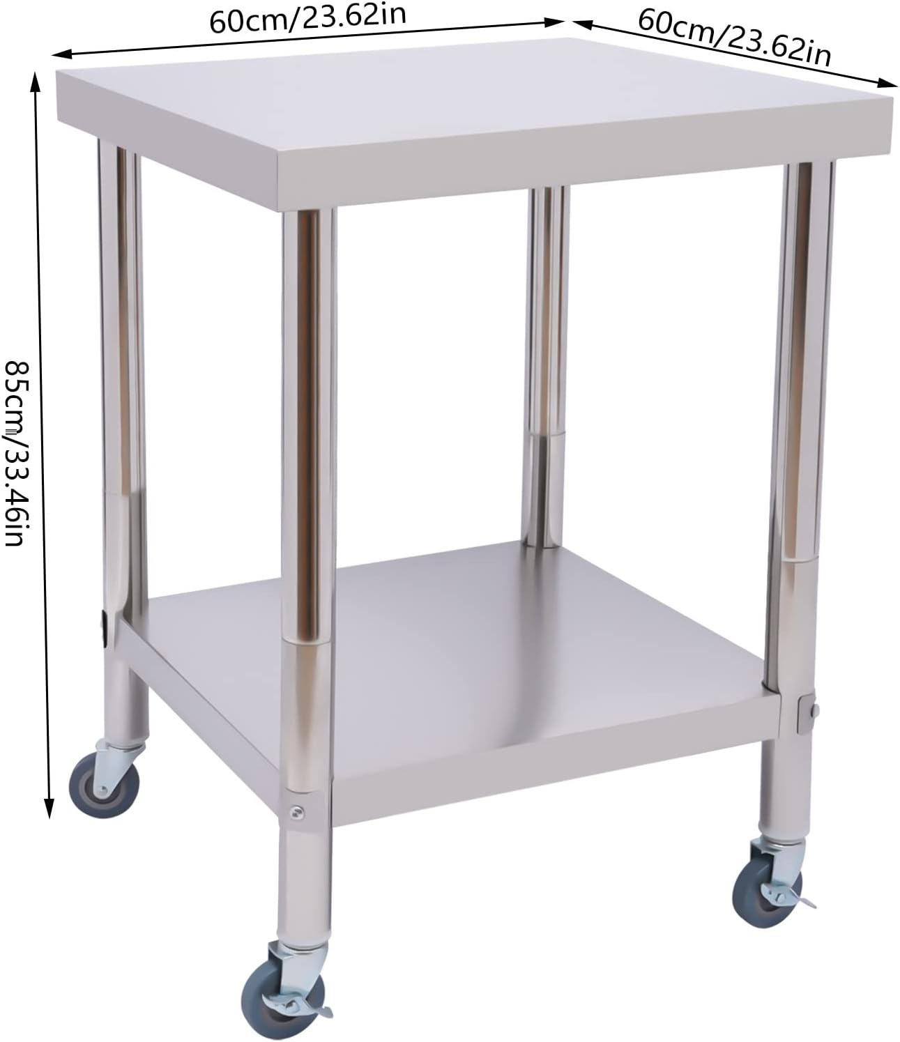Mesa Auxiliar en acero inoxidable, de medidas 600 x 600 x 850 mm alto, con posibilidad de incorporar ruedas con freno.